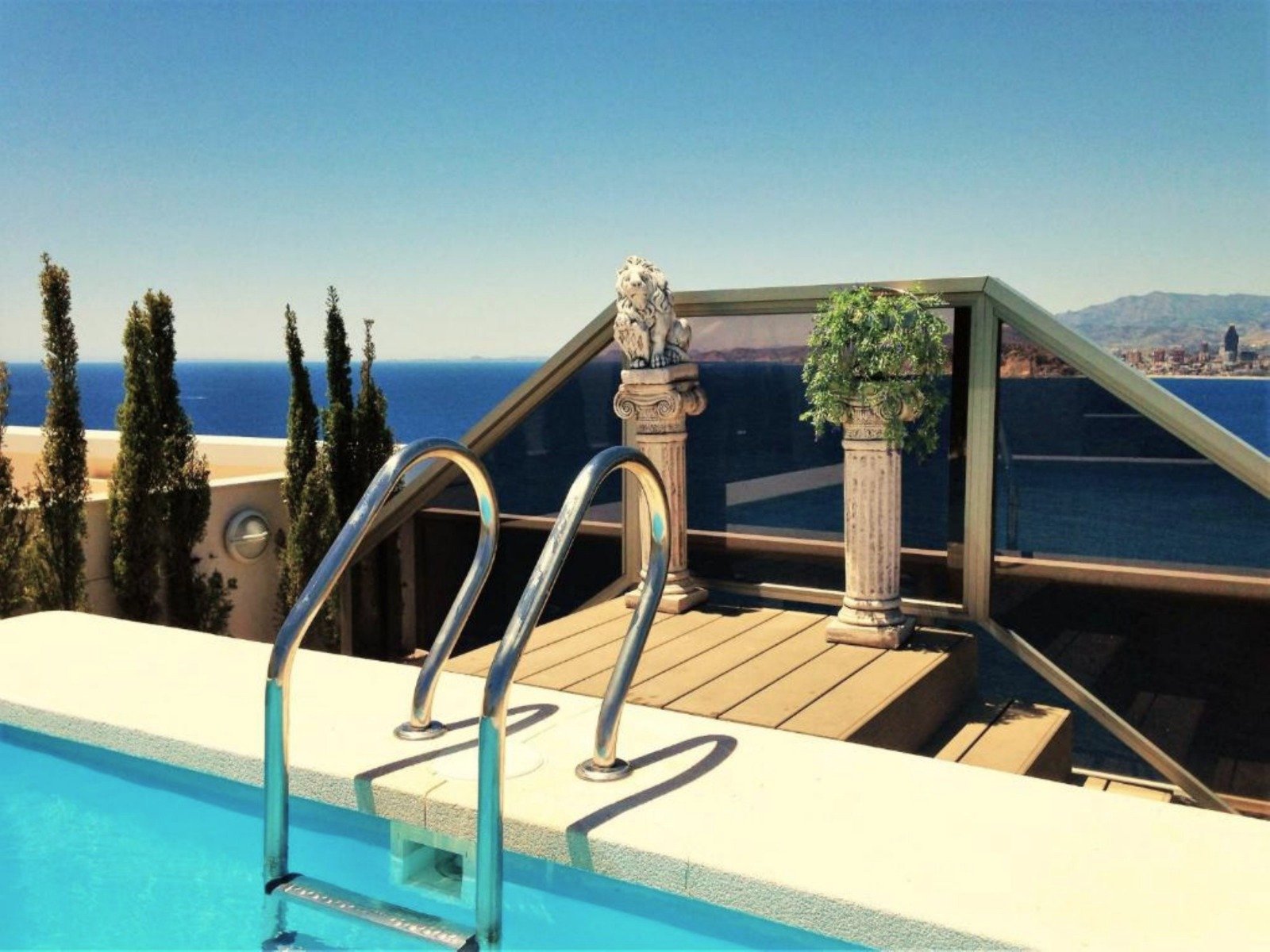 Gemelos penthouse – la estrella de benidorm. Piscina privada en el ático, gimnasio, sauna y acceso a una cala privada solo para residentes de Gemelos 28. Además, 2 plazas de parking, a pesar de que el uso de coche no es obligatorio. Se admiten mascotas bajo condiciones.